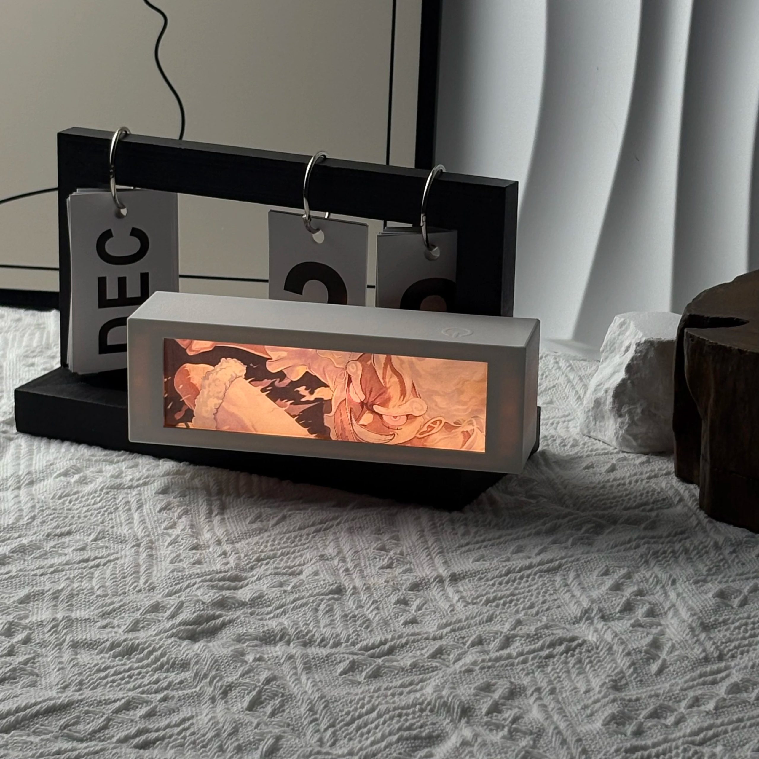 Acrylic light panel with laser-etched anime artwork, set in a durable LED light box base.